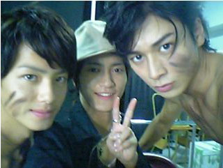 昨日みんなさんからのコメントで、①写ってるのは立海メンバー?ってのと②マサはテニス経験あるの?って質問が多かったのでお答えします(^.^) ①…写メのは立海メンバーです!!でも、真田役のかねちゃんと柳役のケントはいません(>_<) ②…僕はテニス経験がありません。今回が初めてでした。卓球ならやったことあるんですけどねっ(^_^;)卓球とテニスは似てるようで全然似てませんでした。野球の方が似てるかなっ(笑)…僕が思うにルールが卓球で、打ち方が野球みたいな…(^_^;) 今日は役の撮影があります★仁王雅貴!?中河内雅治!?になって頑張ります(^^)では行ってきます!!みんさん今日も一日頑張りましょう☆ PS.この前の撮影の時にジュッタが撮ってくれた写メがあります(^_^;)上半身裸でなかなか良くキマッているのですが、体めちゃ細って感じでガリが目立ちます(>_<)だからまだお預けって事で(^^)←またじれったいイジメ!?
